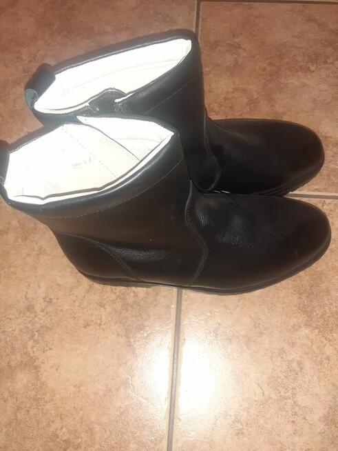 Skórzane czarne buty zapinane na rzep. Stan bardzo dobry. Polecam są bardzo wygodne i ładnie wyglądają na nodze, na mnie ...