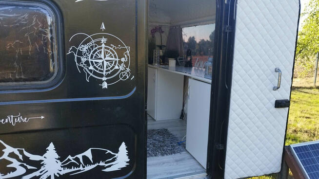 przyczepa zadbana, szczelna , sucha , podłoga twarda , bez żadnych rozwarstwień , wszystko sprawne , moskitiery w oknach ...