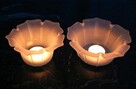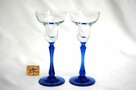 Para pięknych, wysokich, kryształowych świeczników w kształcie kielichów. Czasze są przezroczyste, trzonki z ...