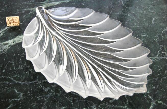Duża, pojemna, kryształowa patera vintage w kształcie liścia. Marka Walther Glas, model Barca. Przeznaczenie: do ...