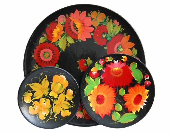 1. Piękny, bardzo duży talerz do powieszenia na ścianie, ręcznie malowany - rosyjska sztuka ludowa, chochłoma z okresu ...